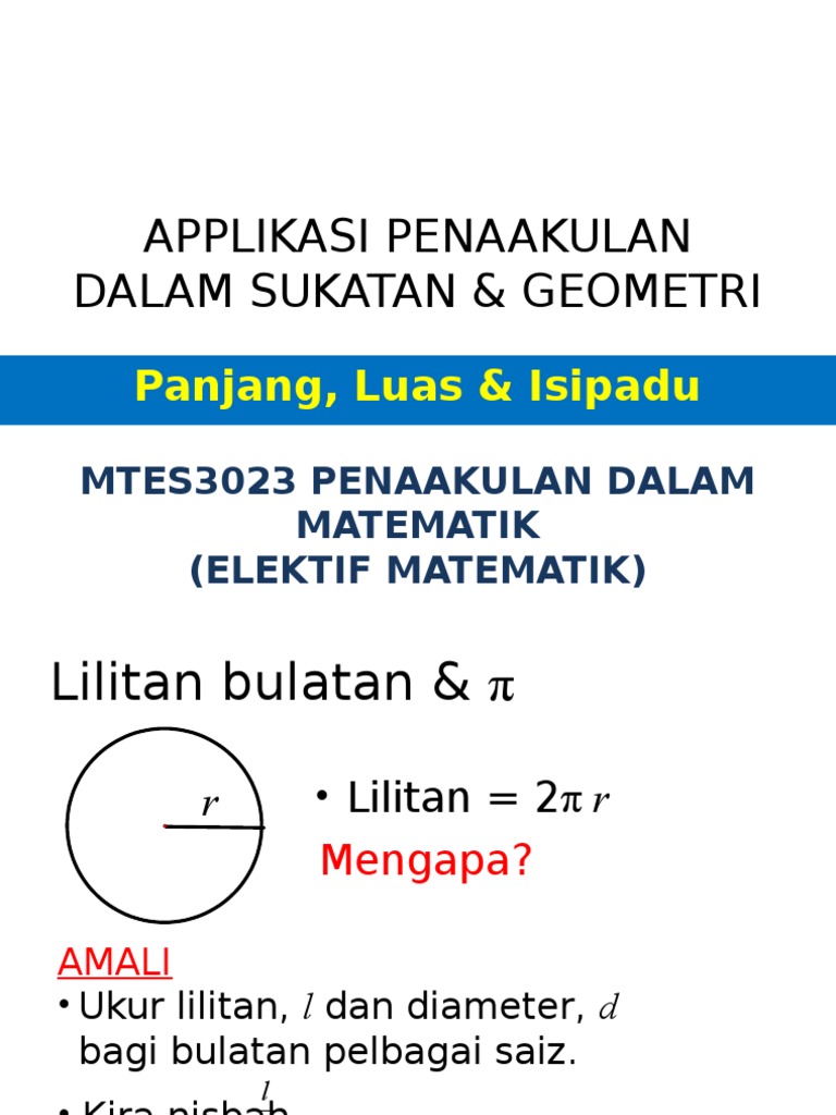10 lilitan perimeter luas bulatan circumference. Lilitan bulatan p x diameter p d 2p x jejari 2p j Luas bulatan Rumus. Kaedah perbandingan luas amali 3.